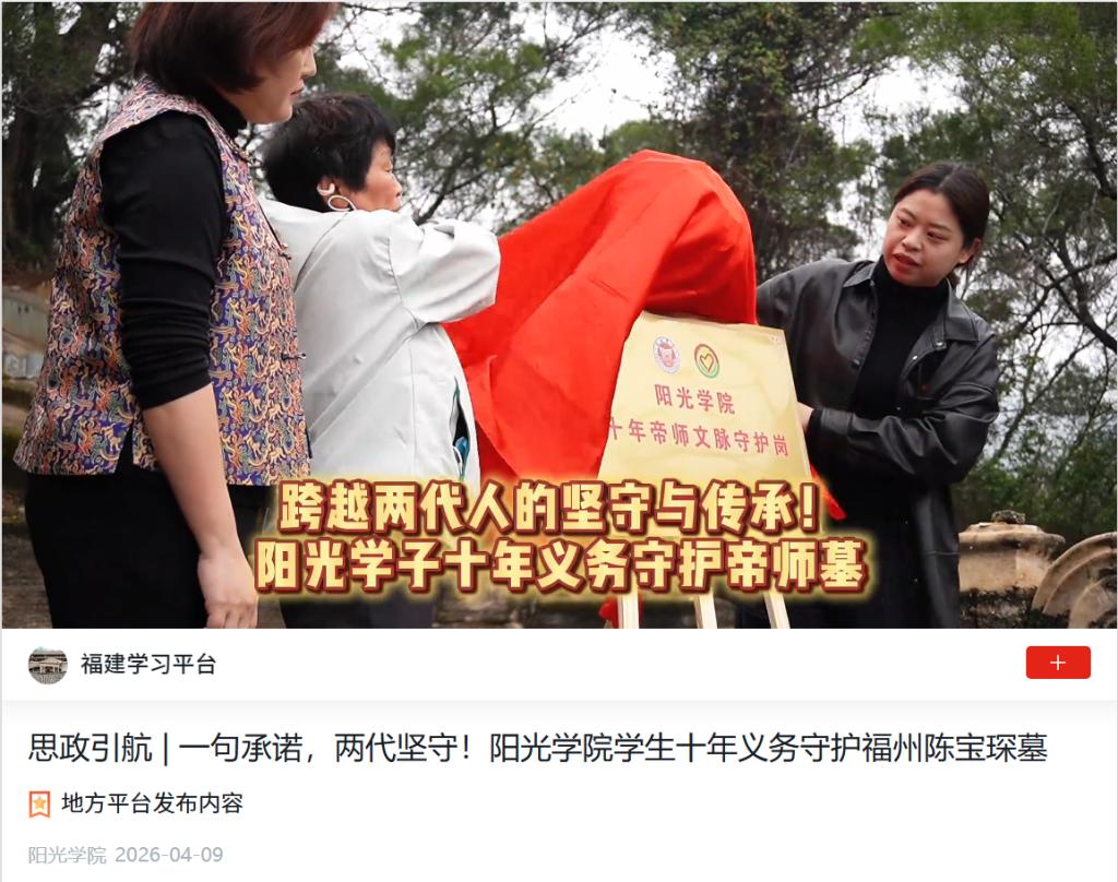 - 学习强国:思政引航 | 一句承诺,两代坚守!阳光学院学生十年义务守护福州陈宝琛墓 [2026-04-09]