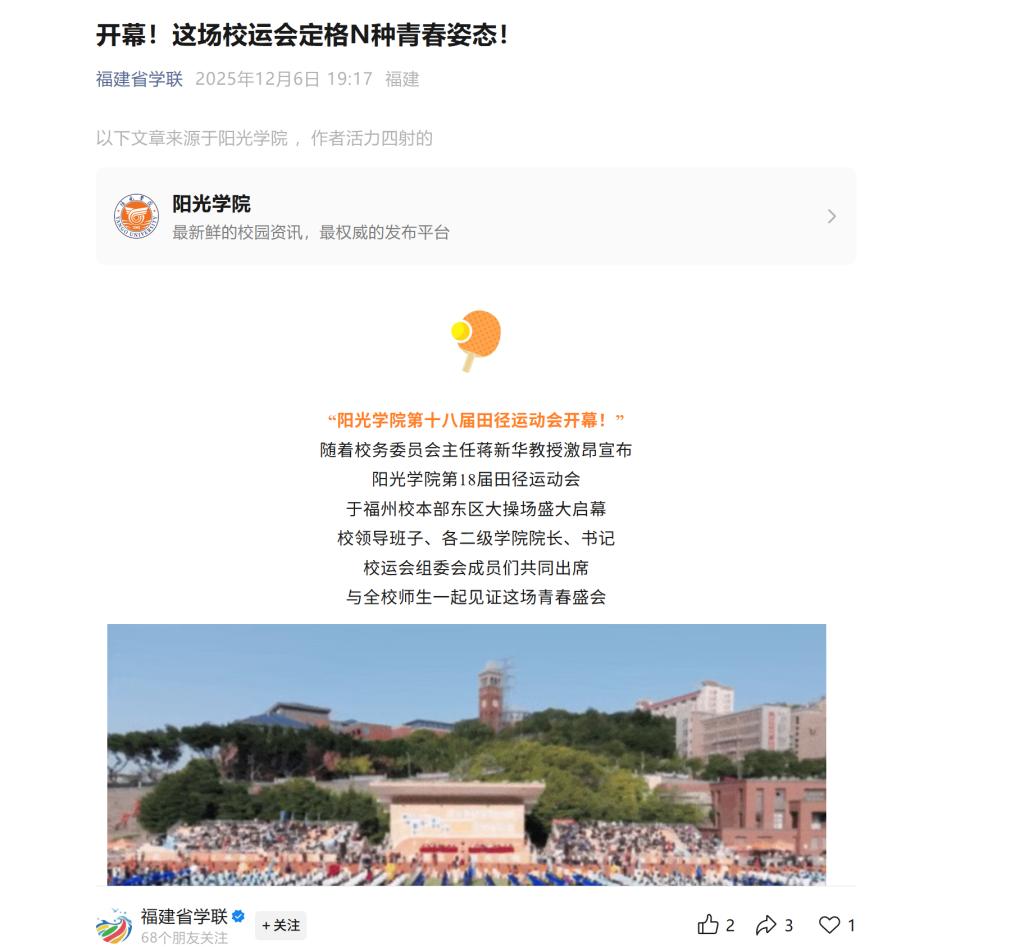 - 破纪录人数是去年5倍!阳光学院第18届校运会收官 [2025-12-06]