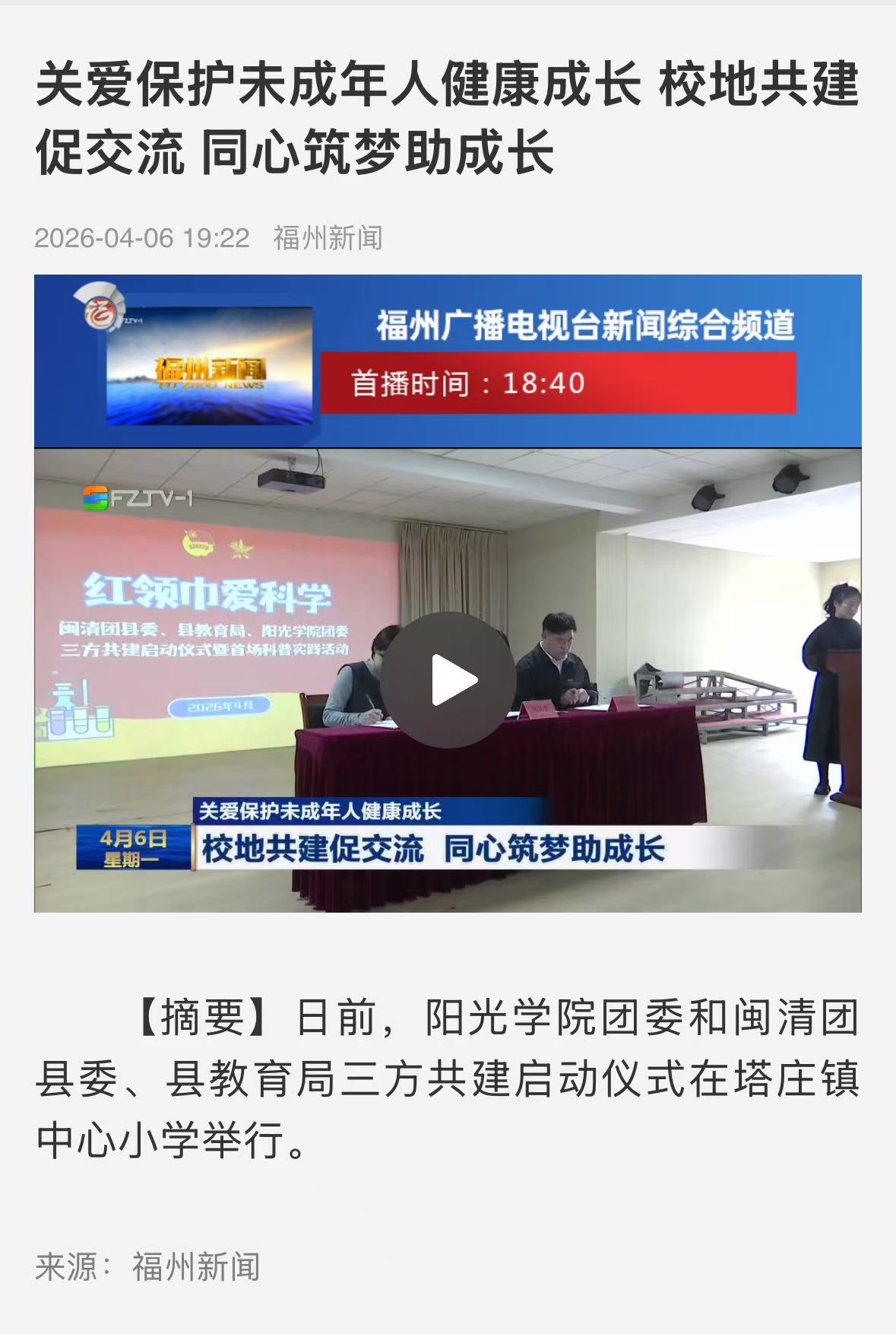 - 福州新闻:关爱保护未成年人健康成长 校地共建促交流 同心筑梦助成长 [2026-04-07]