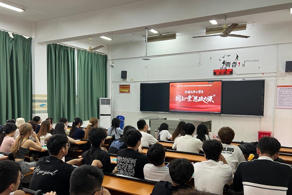 思政大课以“众志成城”“中流砥柱”“精神丰碑”“大国担当”为核心篇章,借助历史影像、AI还原场景、英雄事迹讲述等丰富形式,生动再现抗战岁月的烽火历程,深刻阐释伟大抗战精神的时代内涵。观看过程中,师生们被杨靖宇将军“腹中只有棉絮仍坚守阵地”、赵一曼烈士“严刑拷打下坚贞不屈”等事迹深深触动,不少师生热泪盈眶;而课程中展示的新时代“一带一路”援建、科技自立自强等成就,又让大家倍感振奋,深刻体会到“大国担当”的传承与升华。