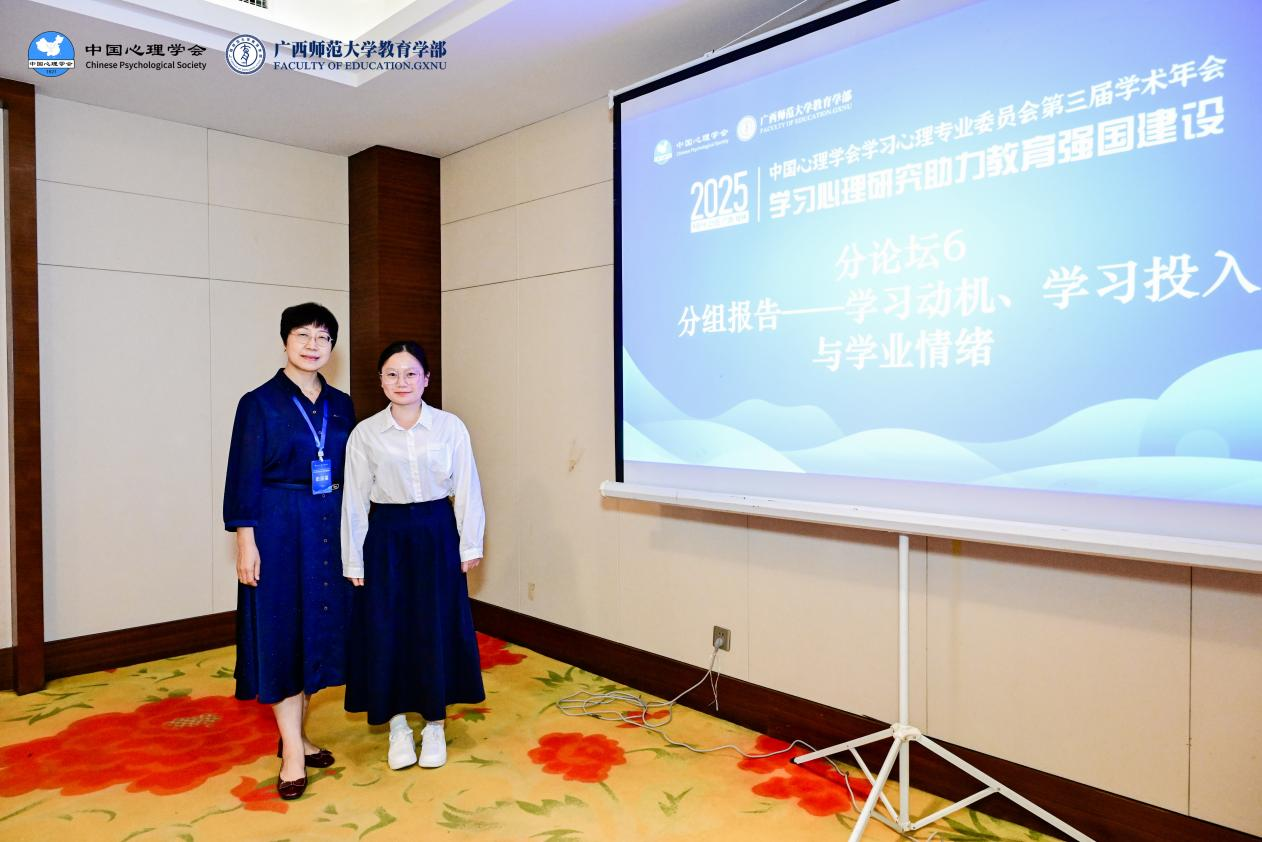 此次全国学术年会由中国心理学会学习心理专业委员会主办,广西师范大学教育学部承办,汇聚了来自全国各地的100余名专家学者,设置8场主旨报告、3场专题报告及7场分论坛,围绕学习心理研究前沿动态与实践转化展开深度交流。田杭玉同学的参会与汇报,不仅为我校应用心理学专业搭建了与全国顶尖学者对话的桥梁,更让外界看到了阳光学院在心理学领域“培养兼具理论基础与实践能力的应用型人才”的扎实成果。