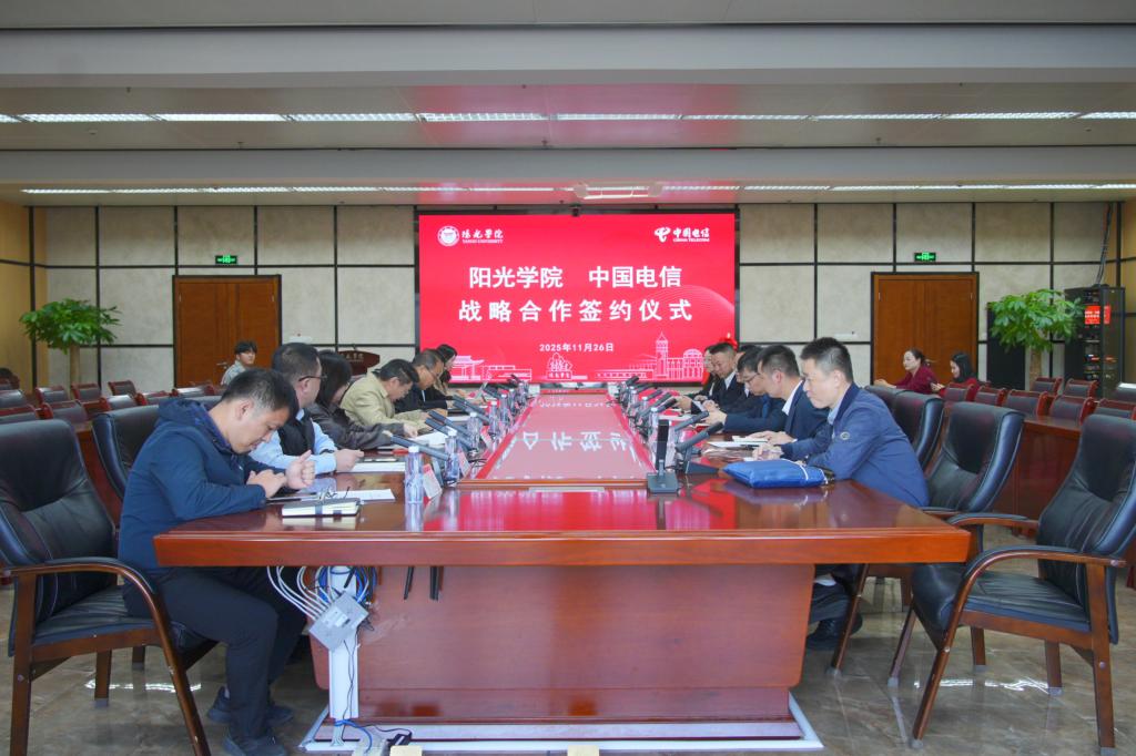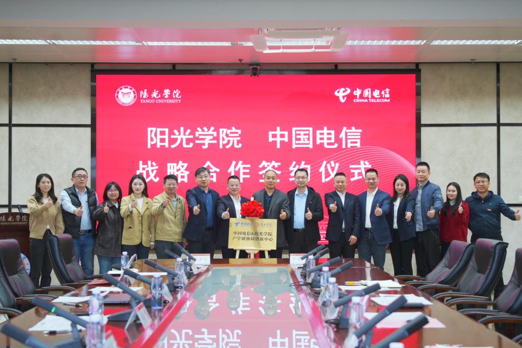 11月26日,阳光学院与中国电信股份有限公司战略合作协议签约仪式暨“中国电信-阳光学院产学研协同创新中心”揭牌仪式在正德楼720会议室举行。中国电信福州分公司党委书记、总经理张奕培、副总经理毕超、中国电信马尾分公司党委书记、总经理何宗寿及相关部门负责人,阳光学院校长达新宇及相关学院、部处负责人出席签约仪式。