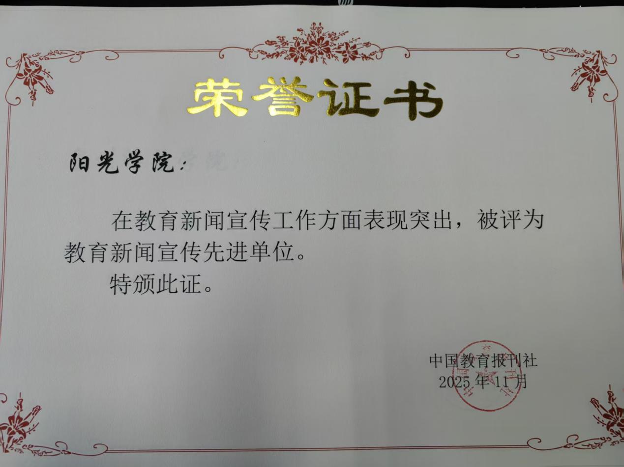 近日,中国教育报公布2025年度教育新闻宣传先进单位名单,阳光学院入选中国教育报新闻宣传先进单位,我校已连续两年获评该项荣誉。