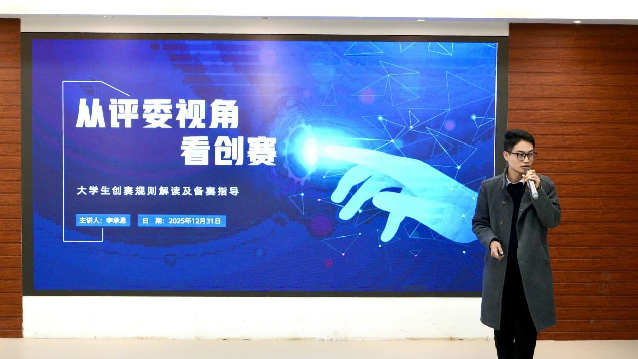 启动仪式后,教育部中国国际大学生创新大赛评审专家,人社部“中国创翼”创业创新大赛评审专家李承恩导师聚焦“挑战杯”与国创赛,从评审视角深度剖析赛事趋势、核心规则与备赛关键,为我校学子提供了精准而前沿的指导,助力团队明晰方向、高效备战新赛季征程。