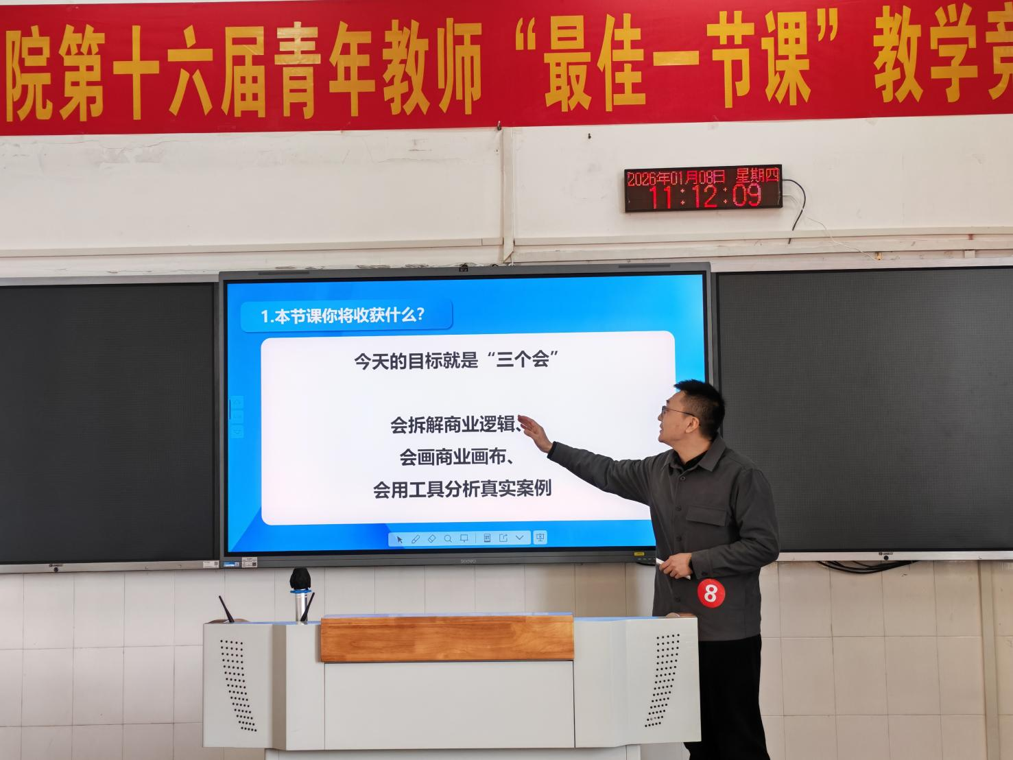 竞赛严格对标省赛标准与流程,设立文科、工科、思想政治课专项三个组别,竞赛内容涵盖“教学设计”与“课堂教学”两大核心板块。经各学院严格推荐,共有22位在院级比赛中脱颖而出的青年教师晋级校级决赛。此外,为激励先进、选拔最优,竞赛特别设置了“省赛资格PK赛”,邀请5位往届校赛一等奖获得者同台展示比拼,角逐代表学校出征省赛的机会。