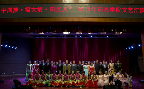 4月14日晚,以"中国梦·福大情·阳光人"为主题的阳光学院文艺汇演在福州大学旗山校区图书馆博学厅举行。校党委陈少平副书记、校党委宣传部商光美部长、阳光学院院党委庄晨忠专职副书记、校团委黄阿火书记、吴雪副书记等领导嘉宾观看了本次汇演。此次活动作为福州大学建校55周年校庆的活动之一,受到了在场师生的一致好评。