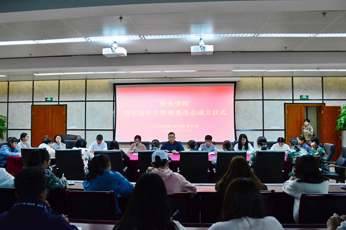 10月19日,阳光学院图书馆学生管理委员会成立大会举行。阳光学院团委副书记王林杰,校学生会副主席詹昕、各院系分管副主席、各部门相关负责人以及第一届学生管理委员会学生代表参加大会。