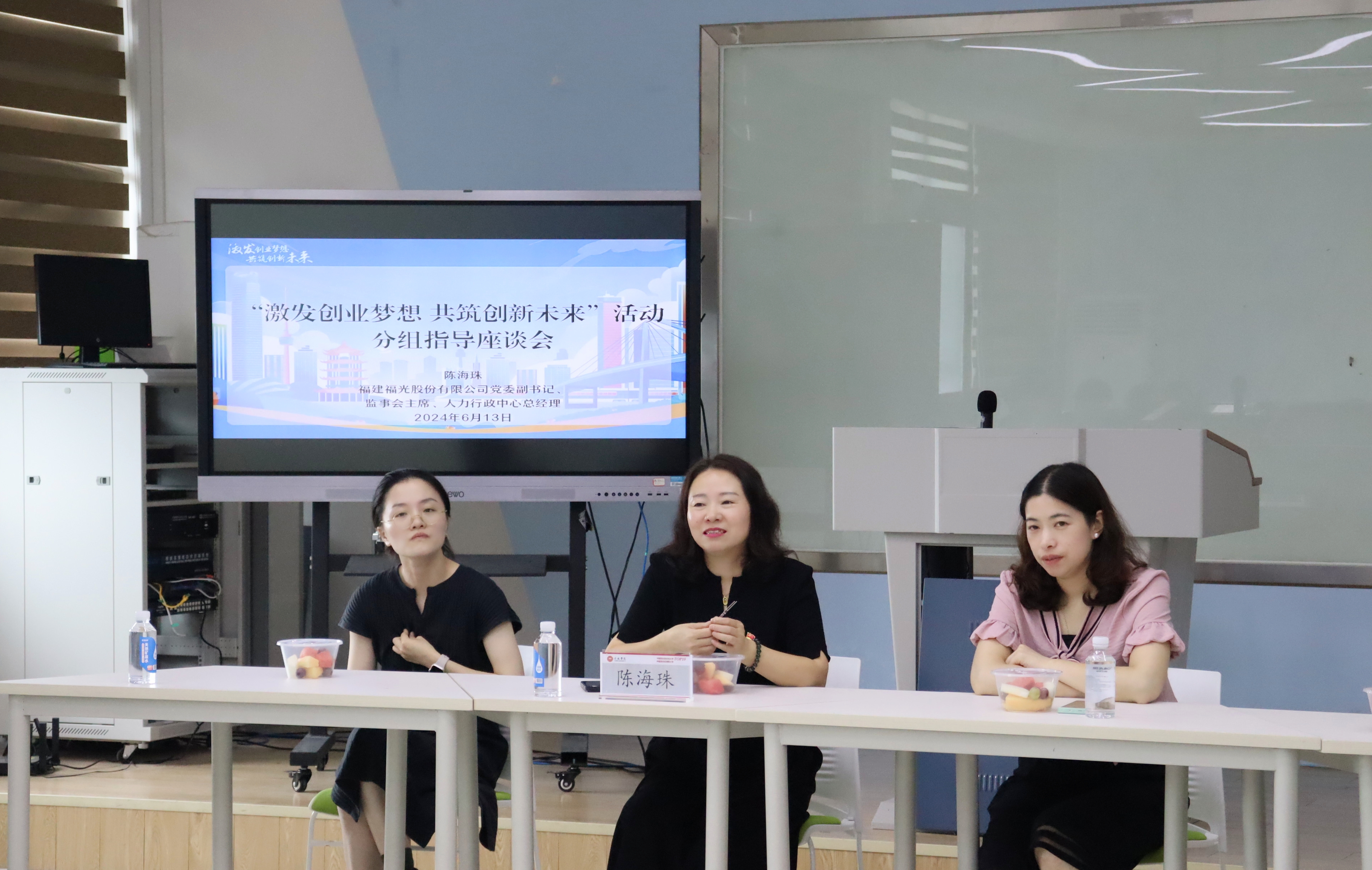 “敢为天下先”“守正才能创新”“大学毕业生要具备三把钥匙”“成功需要提前规划、设定目标、持续努力”……活动现场频频爆出金句,引发大家共鸣。福建朝日环保科技开发有限公司党委书记、董事长翁希明,福建福光股份有限公司党委副书记、监事会主席、人力行政中心总经理陈海珠结合各自在专业领域学出来的成果、干出来的经验、悟出来的道理、谋出来的点子,畅谈了他们的工作历程、成长经历与理想抱负,与大家一起分享了他们追梦路上的奋斗事迹,还分组指导了对创业就业和个人职业规划感兴趣的同学,彰显了劳动者创新创业风采。现场气氛热烈,取得良好效果。