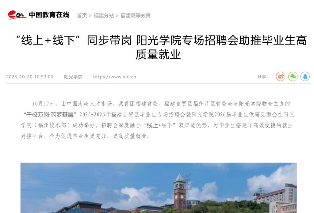 中国教育在线:“线上+线下”同步带岗 阳光学院专场招聘会助推毕业生高质量就业