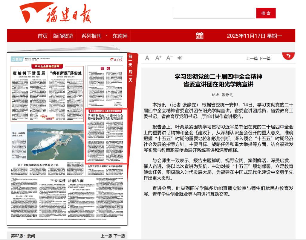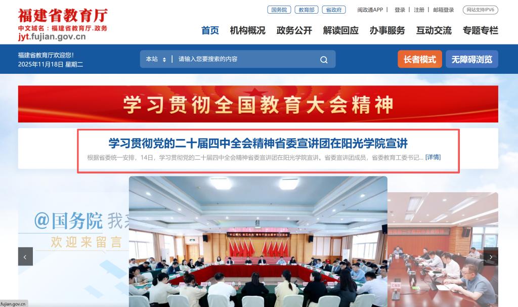 学习贯彻党的二十届四中全会精神省委宣讲团在阳光学院宣讲_ 头条新闻_ 福建省教育厅