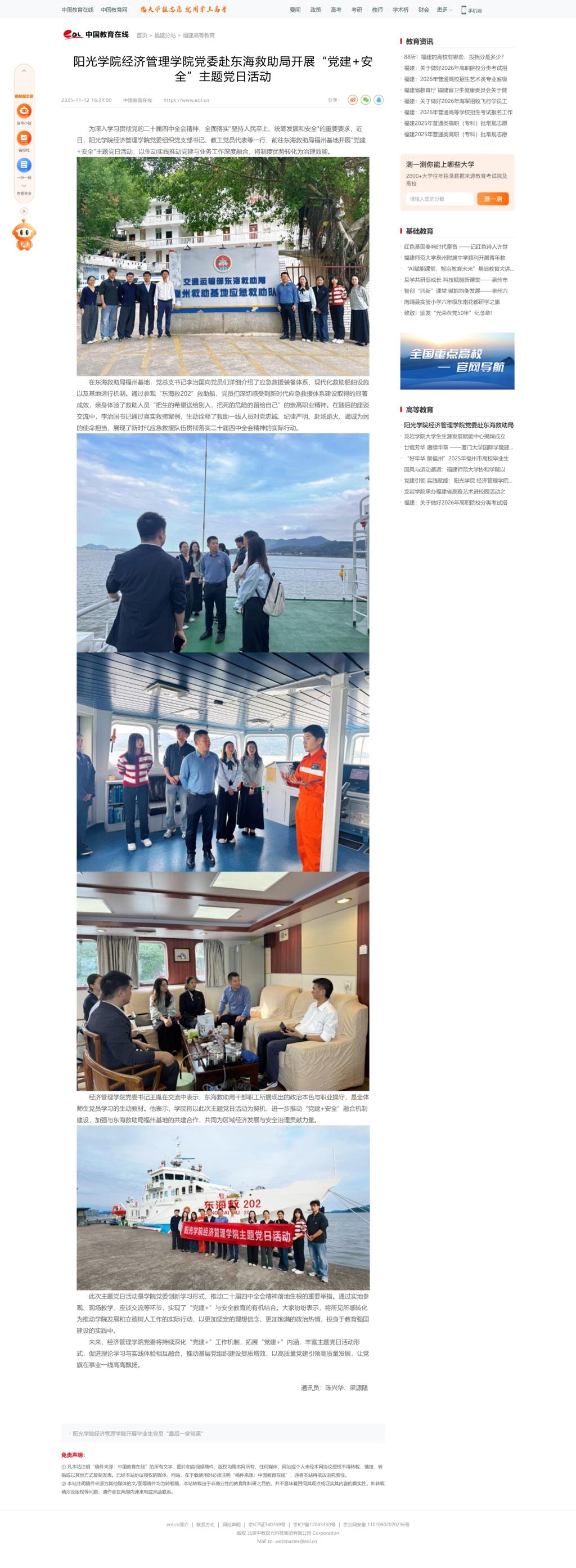 中国教育在线:阳光学院经济管理学院党委赴东海救助局开展“党建+安全”主题党日活动