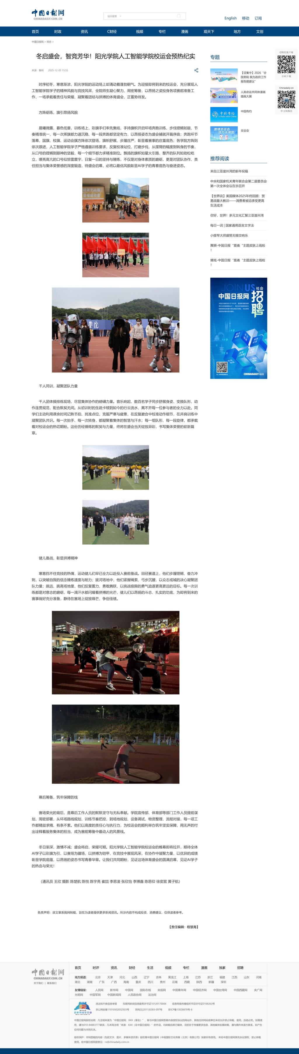 中国日报网:冬启盛会,智竞芳华!阳光学院人工智能学院校运会预热纪实