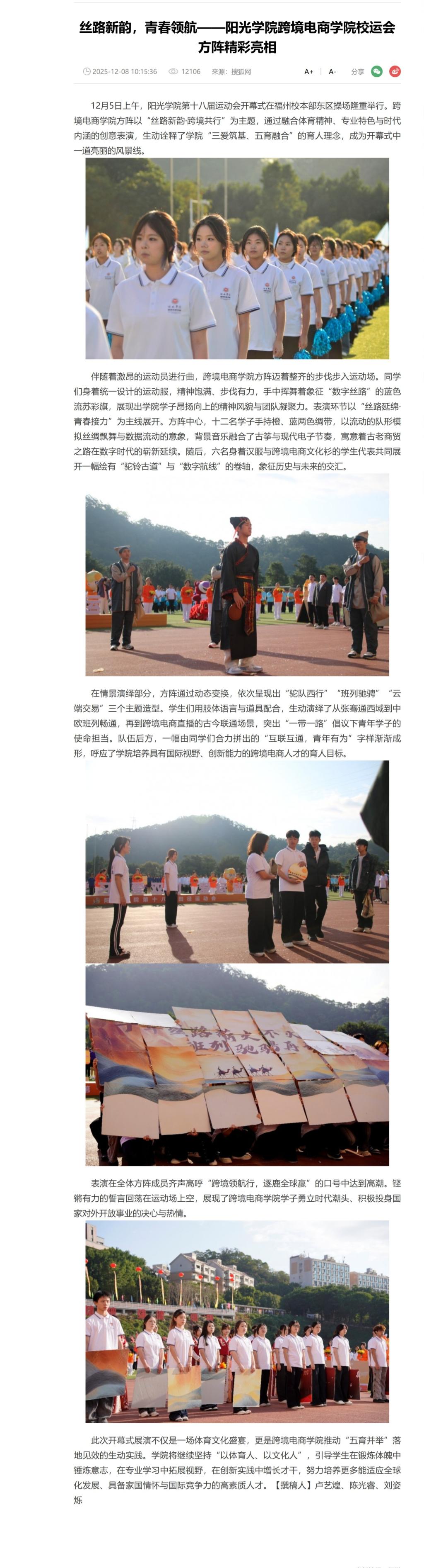 中华网:丝路新韵,青春领航——阳光学院跨境电商学院校运会方阵精彩亮相