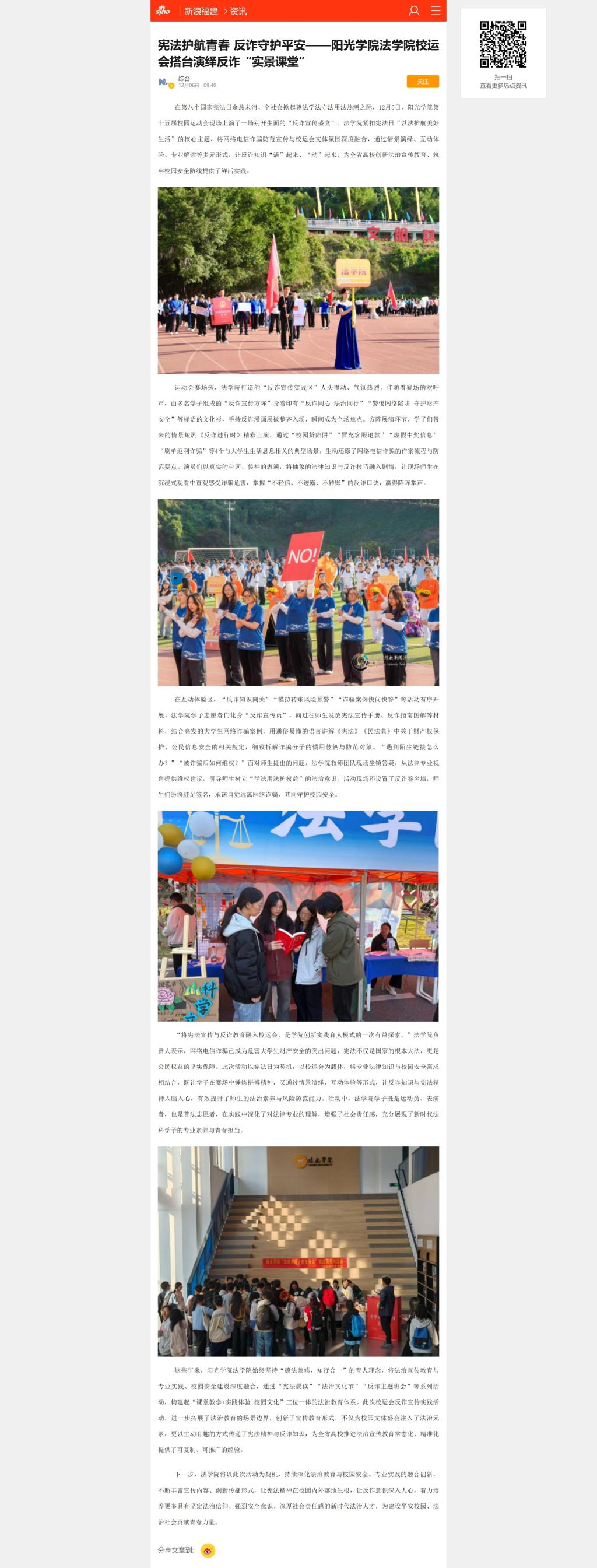 新浪新闻:宪法护航青春 反诈守护平安--阳光学院法学院校运会搭台演绎反诈“实景课堂”