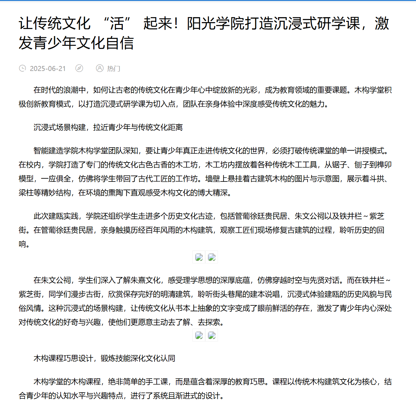 大众导报网:让传统文化 “活 ” 起来!阳光学院打造沉浸式研学课,激发青少年文化自信