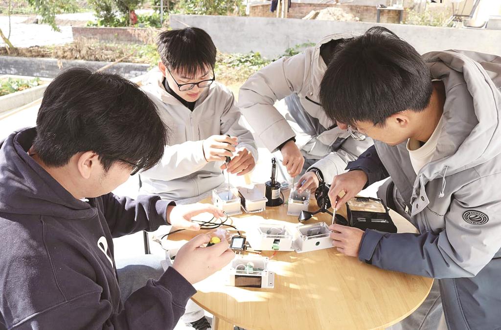 寒假期间,我省多所高校派出学生实践队走进各地田间地头,围绕智慧农业、乡村文旅、研学体验等乡村发展核心需求开展服务。图为阳光学院实践队在闽清县塔庄镇秀洋村搭建智慧农业全周期智能闭环系统,该系统可根据土壤湿度自动触发精准灌溉,并能同步对霜冻风险和管路故障进行实时预警。