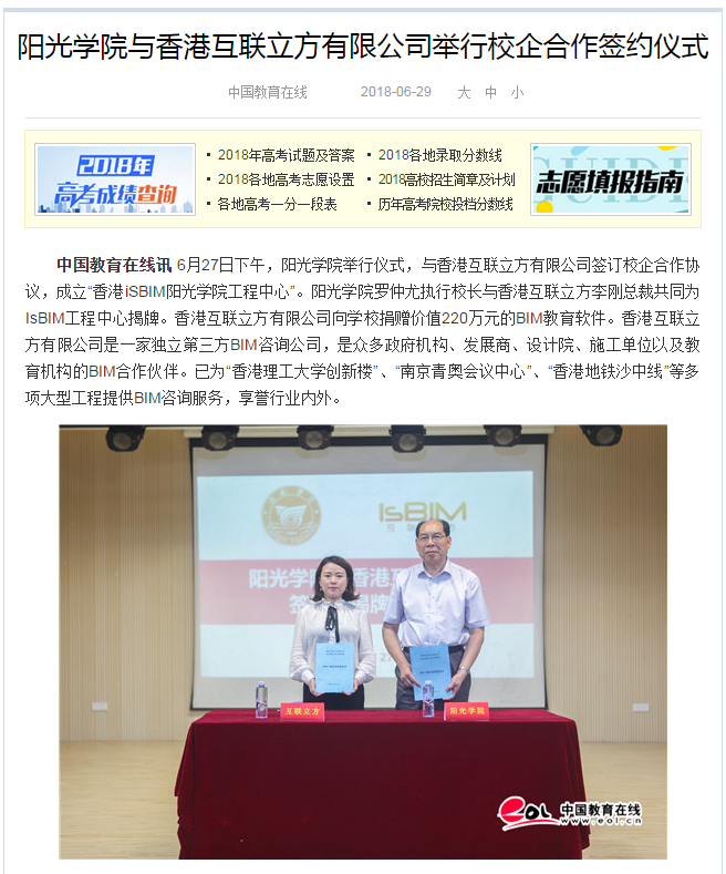 中国教育在线:阳光学院与香港互联立方有限公司举行校企合作签约仪式