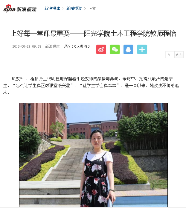 新浪福建6月27日讯 执教7年,程怡身上很明显地保留着年轻教师的激情与赤诚。采访中,她提及最多的是学生。“怎么让学生真正对课堂感兴趣”,“让学生学会真本事”,是一直以来,她孜孜不倦的追求。