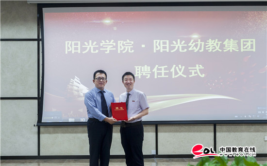中国教育在线9月30日讯 “我校将以本次签约暨聘任仪式为契机,与阳光幼教集团一道联合办学,办好园长预科班。未来几年内,阳光学院将会举全校之力,把学前教育学院建设成为全国最具影响力、人才辈出的幼教 ‘黄埔军校’!”9月28日,阳光幼教集团与阳光学院携手合作之“园长预科班”订单式人才培养协议签约仪式隆重举行,阳光学院校长乔海曙校长为这次的“携手”勾勒出清晰的目标。