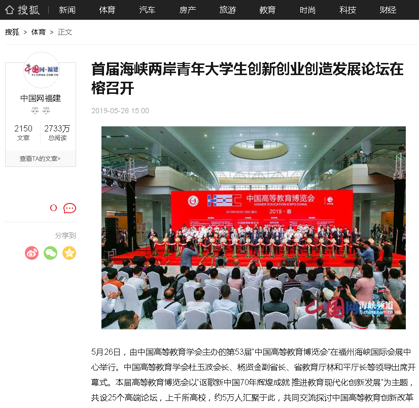 搜狐网:首届海峡两岸青年大学生创新创业创造发展论坛在榕召开