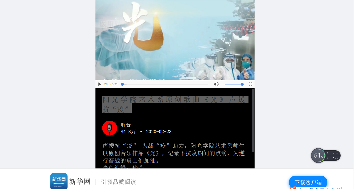 相关链接:http://my-h5news.app.xinhuanet.com/h5/video.html?articleId=665702a3-a48b-49bc-85d1-3e03e0b5ba03&share_device_token=4f7873caea4d8458f42a7a10c83a47b9&share_time=1582434863953&share_type=1&from=groupmessage&isappinstalled=0