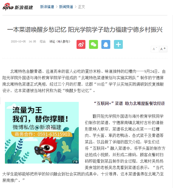 北墘特色自酿黄酒、远道而来的客人必吃的蛋炒米粉、味道独特的红糟肉……9月24日,由阳光学院外国语与海外教育学院学子组成的“北墘特色菜谱策划与实施实践队”制作的宁德屏南北墘特色菜谱正式亮相,经过三个月的打磨,这群“00后”学子从实地实践调研到反复推敲设计,这本菜谱被当地村民称为能“唤醒乡愁记忆”。