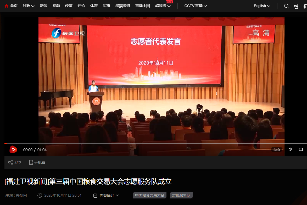 福建卫视新闻:第三届中国粮食交易大会志愿服务队成立