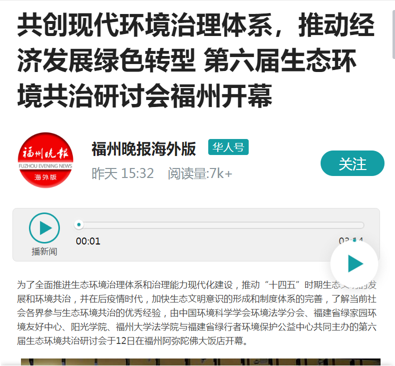 为了全面推进生态环境治理体系和治理能力现代化建设,推动“十四五”时期生态文明的发展和环境共治,并在后疫情时代,加快生态文明意识的形成和制度体系的完善,了解当前社会各界参与生态环境共治的优秀经验,由中国环境科学学会环境法学分会、福建省绿家园环境友好中心、阳光学院、福州大学法学院与福建省绿行者环境保护公益中心共同主办的第六届生态环境共治研讨会于12日在福州阿弥陀佛大饭店开幕。