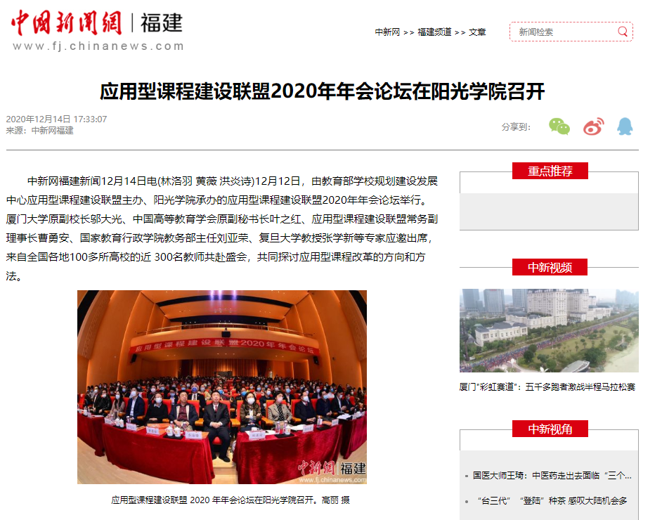 应用型课程建设联盟 2020 年年会论坛在阳光学院召开。连紫妍 摄