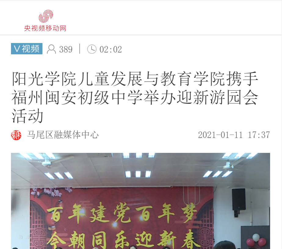 央视频移动网:阳光学院儿童发展与教育学院携手福州闽安初级中学举办迎新游园会活动