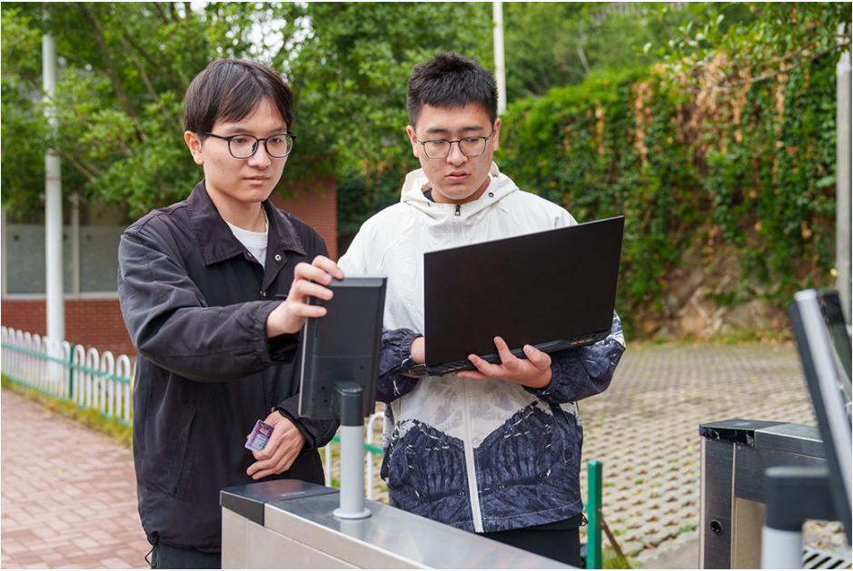 “别看小小的一个门岗系统,其中涉及了物联网、人工智能、大数据分析等多个领域的技术知识,需要有大量的技术研究和实验数据作为支撑,也非常考验整个团队的合作。”回想起项目伊始,2020级物联网工程专业林柏希表示,为了使系统的最终效果能够呈现最大化,团队在校园内进行了多次实地测试、调试和优化。暑假期间,他们也留校钻研如何提升识别速度、准确率和设备兼容性问题。