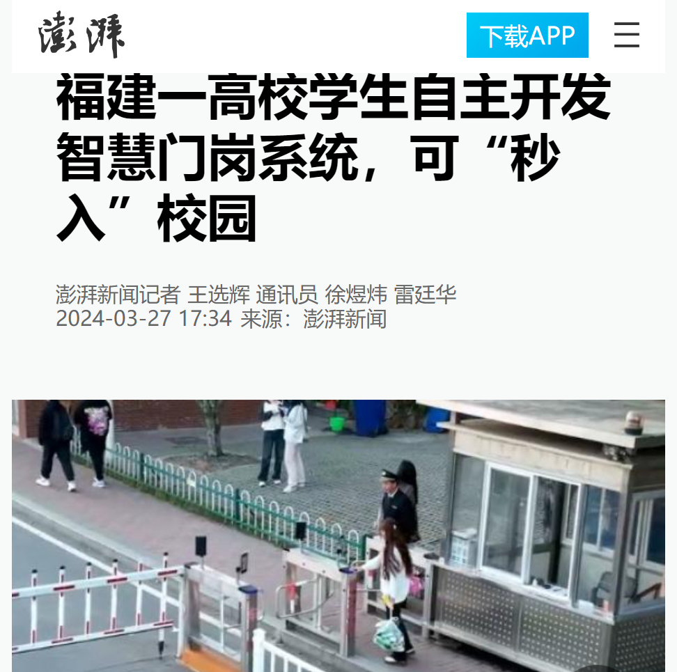 福建一高校学生自主开发智慧门岗系统,可“秒入”校园