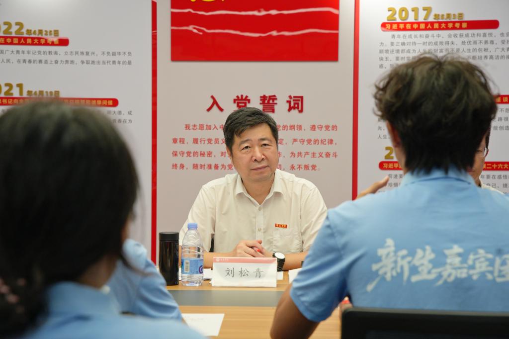 刘松青书记认真听取了新生们的发言,详细记录、积极回应了同学们关于学校人才培养、课程设置、职业规划、校园活动、生活服务等方面的问题。他代表学校向全体新生表示热烈欢迎,对新生代表朝气蓬勃、勤学上进的精神给予肯定。