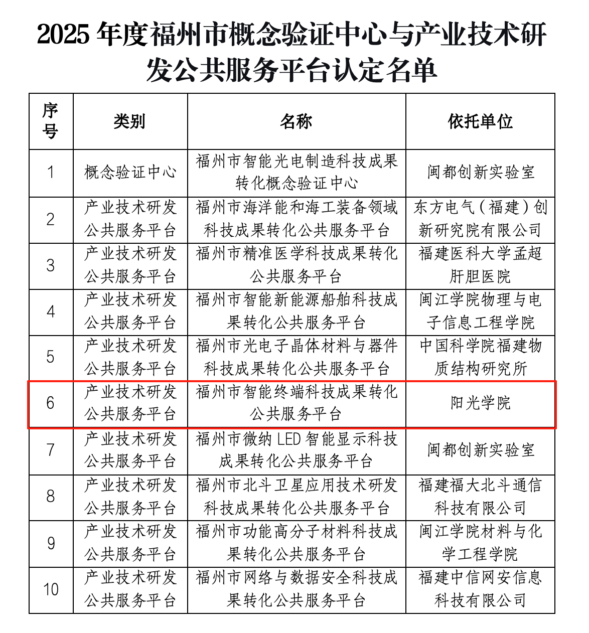10月30日,福州市科技局公布2025年福州市概念验证中心与产业技术研发公共服务平台认定名单,由我校信息工程学院申报的“智能终端科技成果转化公共服务平台”获批立项。